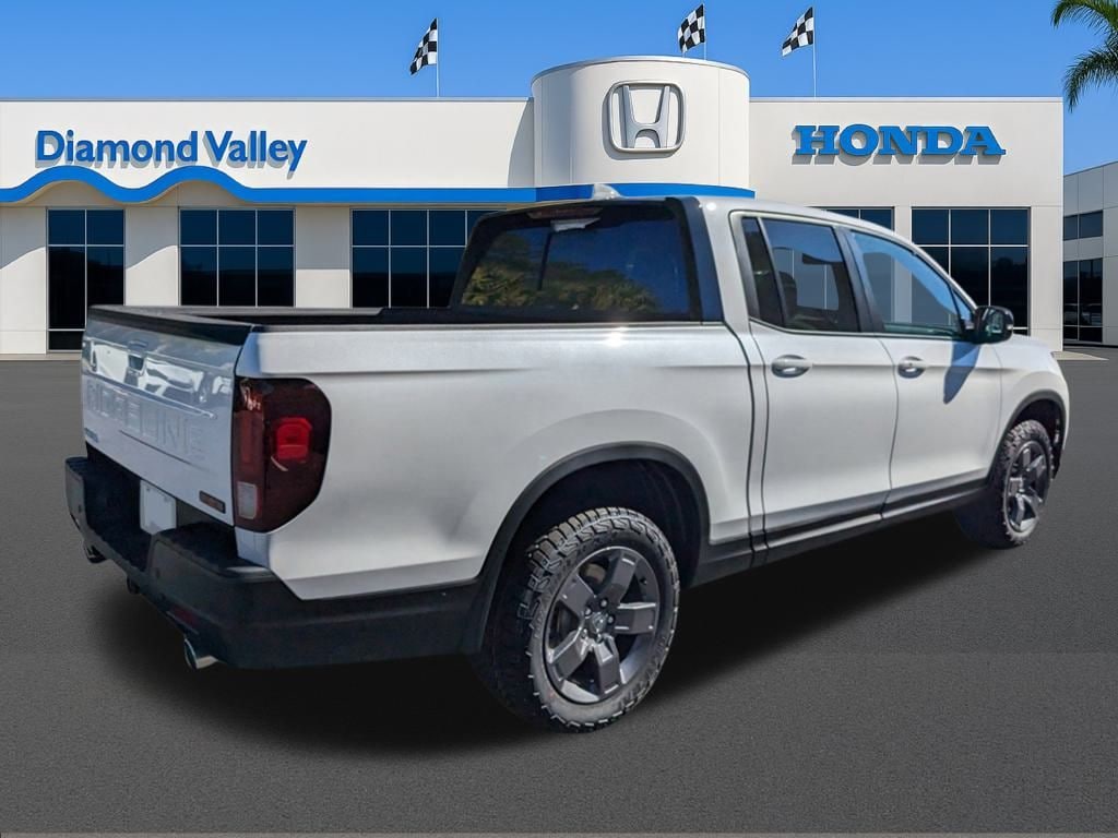 Platinum White 2025 Honda Ridgeline TrailSport AWD 9-Speed Automatic 3.5L V6 SOHC i-VTEC 24V Black Leather.