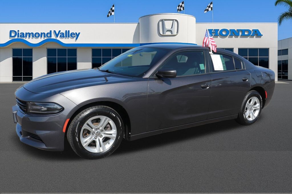 2019 Dodge Charger SXT Confident Rear-Wheel-Drive PerformancennThis 2019 Dodge Charger SXT delivers a composed, confident drive with the classic balance of rear-wheel drive and a refined suspension. Power comes from a 3.6L V6 producing 292 HP, paired with a smooth 8-speed automatic transmission that keeps acceleration controlled and cruising relaxed. Whether navigating city streets or stretching out on the highway, the Charger feels planted and predictable, designed for drivers who appreciate a calm yet responsive sedan.nnInside, the black interior is laid out for everyday comfort and clarity. Supportive front bucket seats, a power driver seat with lumbar adjustment, and dual-zone automatic climate control help tailor the cabin to your preferences. With seating for five across two rows, this sedan offers practical space for passengers while maintaining a driver-focused cockpit. Thoughtful touches like a leather-wrapped shift knob, steering wheel audio controls, and a rear armrest with cupholders add convenience without distraction.nnTechnology is centered around the Uconnect infotainment system with a seven-inch display, offering Apple CarPlay and Android Auto for seamless phone integration. SiriusXM capability, a six-speaker audio system, and Bluetooth connectivity make daily drives more enjoyable and connected. A ParkView rear back-up camera supports confident parking, while fully automatic headlights and speed-sensitive wipers adapt to changing conditions.nnSafety features are designed to assist, not replace, attentive driving. Systems such as Anti-lock Braking System, Electronic Stability Control, Traction Control, Direct Tire Pressure Monitoring, and a comprehensive airbag system work together to support stability and awareness. Daytime running lights and semiautomatic headlamp beam switching add visibility support when conditions change.nnAt Diamond Valley Honda in Hemet, CA, this Charger SXT is available for drivers throughout Riverside County and nearby communities seeking a well-balanced used sedan. With EPA-estimated fuel economy of 19 MPG city and 30 MPG highway, it blends performance with everyday efficiency.nnTo experience this vehicle in person, call us at (951) 309-7583 to schedule your test drive at Diamond Valley Honda.nnDiamond Valley Honda Ownership DisclosurennAs part of the Diamond Valley Honda ownership experience, every used vehicle includes one year of paint protection, applied to support appearance and long-term value.nnSome vehicles may also be equipped with additional dealer-installed accessories, such as ClearShield Plus Paint Protection with nitrogen-filled tires or KARR Security with Theft Replacement Benefit, which are not included in the advertised price. Availability and pricing of these items vary by vehicle and are disclosed on our website or during the sales process.nnWe encourage you to review these options with your Product Specialist so you can select the protections that best fit your ownership needs.nnInformation deemed reliable but not guaranteed. Buyer to verify all specifications. Advertised price does not include factory or dealer-installed accessories. See dealer for complete details.