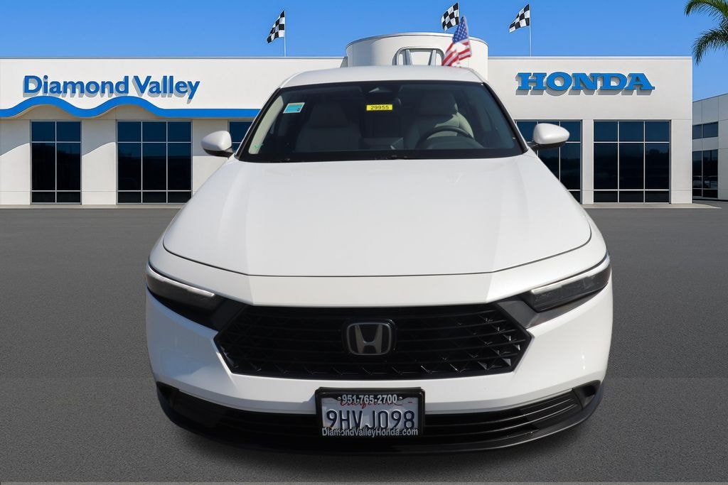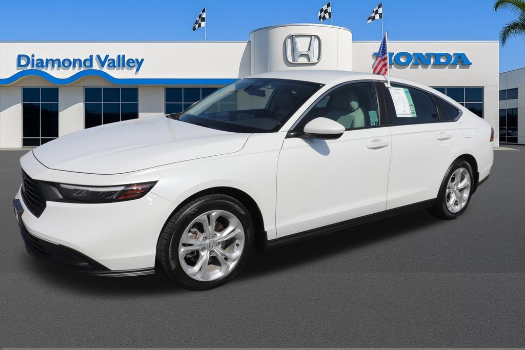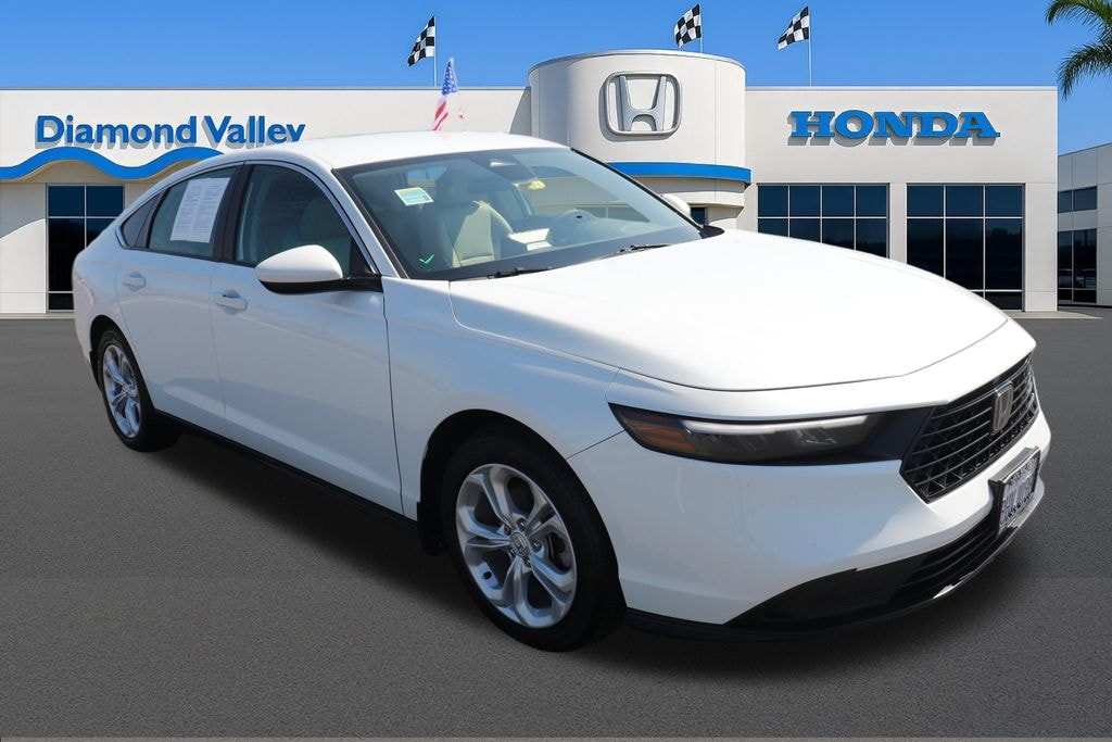 2023 Honda Accord LX Modern Comfort with Confident Everyday PerformancennThe 2023 Honda Accord LX offers a smooth and composed driving experience that fits daily life in Hemet, CA and throughout Riverside County. Its 1.5L In-Line Dual Overhead Cam engine delivers confident performance supported by 192 HP, while the CVT helps maintain steady acceleration and a relaxed feel on city streets and highways. With an EPA-estimated 29 MPG city and 37 MPG highway, the Accord LX blends power and efficiency for everyday use.nnInside, the cabin is designed to be practical, comfortable, and easy to enjoy. Fabric seat trim, supportive front bucket seats, and a thoughtfully arranged layout create a welcoming space for both short trips and longer drives. The center armrest, rear seat armrest, and well-placed storage areas make daily tasks easier, while automatic temperature control keeps the cabin comfortable across varying weather conditions in Hemet and surrounding areas such as Temecula and Moreno Valley.nnTechnology features enhance convenience and everyday usability. Apple CarPlay and Android Auto offer simple phone integration, and the 160-watt audio system with four speakers provides clear sound for music and calls. A trip computer, outside temperature display, and steering wheel-mounted controls keep important information within reach. Fully automatic headlights, heated mirrors, variably intermittent wipers, and speed-sensitive steering support visibility and smooth handling in changing conditions.nnSafety support includes Electronic Stability Control, Traction Control, ABS, multiple airbags, and driver-assist technologies such as Adaptive Cruise Control with Low-Speed Follow, Forward Collision Warning, Lane Keeping Assistance, and an exterior parking camera. These systems are designed to assist awareness and help support confident driving throughout Riverside County.nnTo learn more or schedule a test drive with Diamond Valley Honda in Hemet, CA, call us at (951) 309-7583.nnDiamond Valley Honda Ownership DisclosurennAs part of the Diamond Valley Honda ownership experience, every used vehicle includes one year of paint protection, applied to support appearance and long-term value.nnSome vehicles may also be equipped with additional dealer-installed accessories, such as ClearShield Plus Paint Protection with nitrogen-filled tires or KARR Security with Theft Replacement Benefit, which are not included in the advertised price. Availability and pricing of these items vary by vehicle and are disclosed on our website or during the sales process.nnWe encourage you to review these options with your Product Specialist so you can select the protections that best fit your ownership needs.nnInformation deemed reliable but not guaranteed. Buyer to verify all specifications. Advertised price does not include factory or dealer-installed accessories. See dealer for complete details.