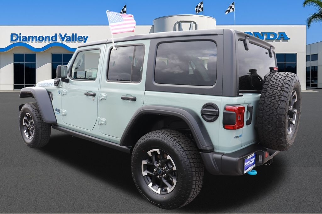 The 2024 Jeep Wrangler Rubicon 4xe delivers legendary off-road capability with modern hybrid efficiency, giving Hemet and Riverside County drivers the best of both worlds. Its 375 HP plug-in hybrid system, rugged 4WD drivetrain, and advanced Jeep safety technology make it the ultimate adventure-ready SUV. Eligible for premium upgrade packages, this Earl Clearcoat Rubicon combines heritage, power, and efficiency in a way only Jeep can.