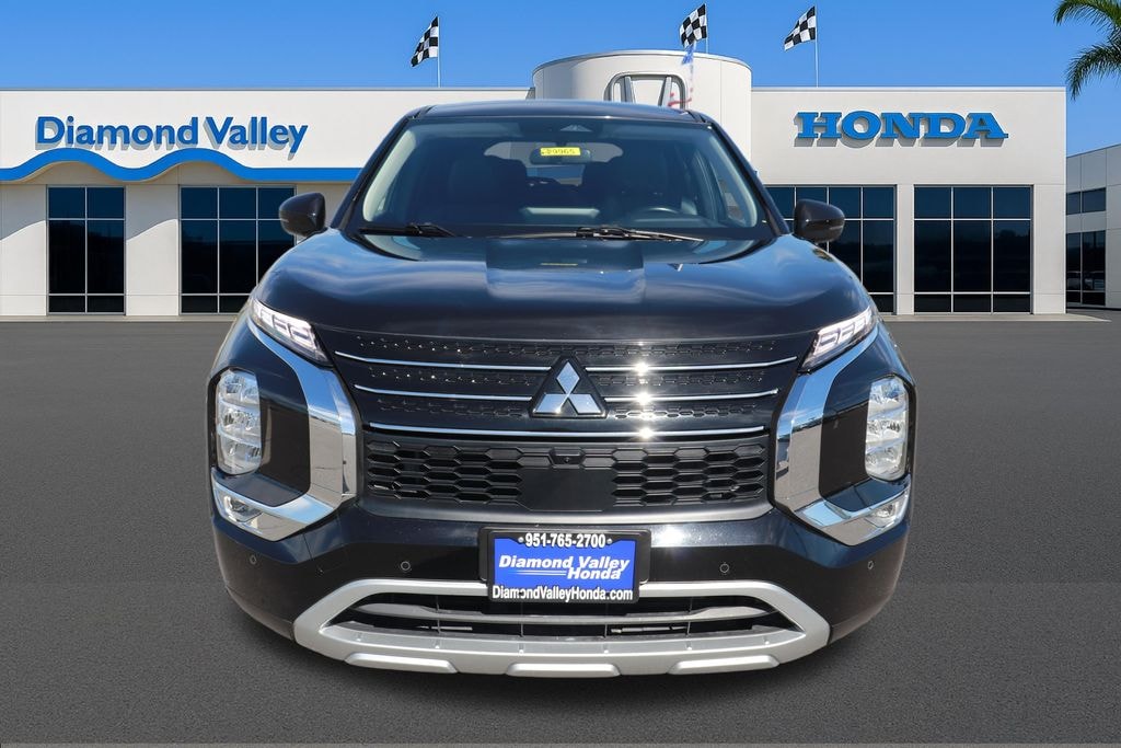 2024 Mitsubishi Outlander SE Modern Comfort with Three-Row VersatilitynnThe 2024 Mitsubishi Outlander SE brings together smooth performance, refined comfort, and three-row practicality, making it a confident choice for everyday driving around Hemet, CA. Its 2.5L Dual Overhead Cam engine supports composed acceleration, while the CVT helps maintain a quiet, steady ride. With an efficient rating of 24 MPG city and 31 MPG highway, this Outlander is well suited for commutes, errands, and weekend drives across Riverside County.nnInside, the cabin offers a well-crafted space with Synthetic Leather seat trim and a clean Black interior that feels both modern and comfortable. Heated front seats, a power driver seat, and dual-zone automatic temperature control make it easy to settle in for daily travel. With three rows of seating for seven, including a reclining third row and split-folding second and third rows, the Outlander adapts quickly for passengers, cargo, or a mix of both. The Labrador Black Pearl exterior adds a confident and polished look that complements its spacious interior design.nnDaily driving is supported by intuitive technology, including a 9-inch navigation system with Smartphone Link, Android Auto, and Apple CarPlay. Steering wheel-mounted controls, Bluetooth audio, and a helpful trip computer keep essential information close and accessible. Safety support includes Forward Collision Warning, Lane Departure Warning, Blind Spot Warning, Pedestrian Automatic Emergency Braking, Adaptive Cruise Control, Parking Assist, and a backup camera. These features are designed to assist awareness on the road but do not replace responsible driving.nnTo learn more or schedule a test drive at Diamond Valley Honda in Hemet, CA, contact our team today at (951) 309-7583.nnDiamond Valley Honda Ownership DisclosurennAs part of the Diamond Valley Honda ownership experience, every used vehicle includes one year of paint protection, applied to support appearance and long-term value.nnSome vehicles may also be equipped with additional dealer-installed accessories, such as ClearShield Plus Paint Protection with nitrogen-filled tires or KARR Security with Theft Replacement Benefit, which are not included in the advertised price. Availability and pricing of these items vary by vehicle and are disclosed on our website or during the sales process.nnWe encourage you to review these options with your Product Specialist so you can select the protections that best fit your ownership needs.nnInformation deemed reliable but not guaranteed. Buyer to verify all specifications. Advertised price does not include factory or dealer-installed accessories. See dealer for complete details.