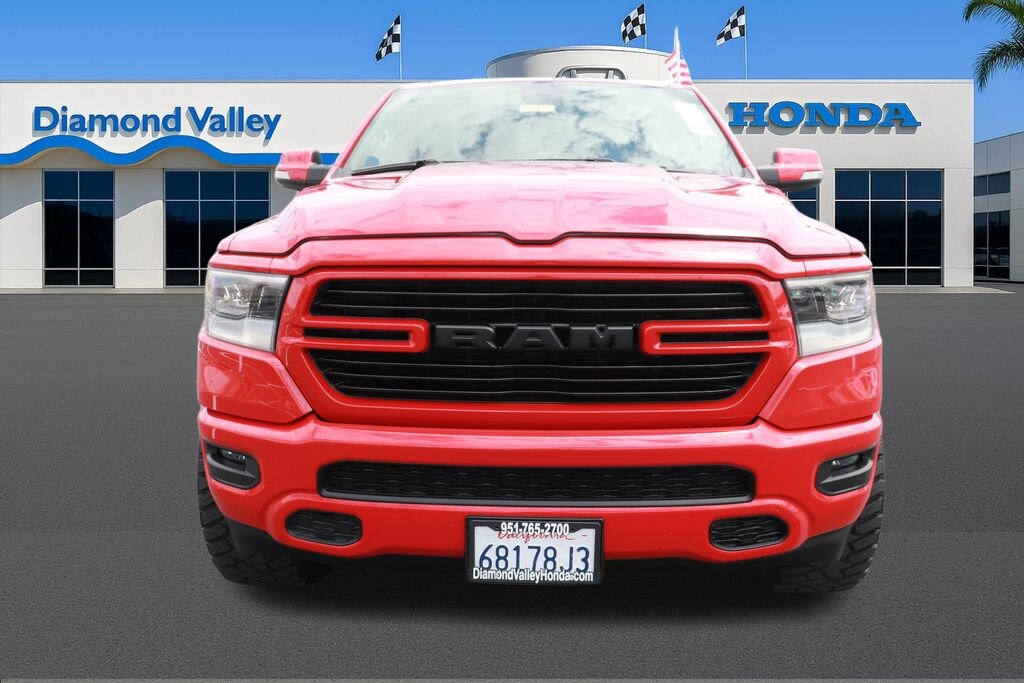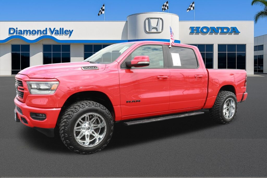 2020 Ram 1500 Rebel - 4WD 5.7L V8 Practical Truck for Commuting, Errands & Weekend TravelnnPresence & DrivennThis 2020 Ram 1500 Rebel is ideal for drivers who need a capable 4WD truck that handles daily use across Hemet, Riverside, and nearby Inland Empire communities. With the 5.7L V8 engine and 8-speed automatic transmission, it is designed for commuting across local highways while remaining practical for work travel and weekend trips.nnThe Rebel trim provides a grounded driving feel that is comfortable for repeat daily driving. Whether you are managing school pickups in San Jacinto or navigating errands in Menifee, this truck offers useful cargo flexibility for daily life with its Crew Cab configuration and rear underseat compartment storage.nnOwnership Experience - Included Value from Day OnennThis vehicle is prepared for ownership with specific protections already applied and included in the advertised price. ClearShield exterior protection is designed to protect the exterior finish from everyday environmental wear, helping maintain the Flame Red Clearcoat finish. One year of paint and fabric protection is also included, designed to preserve the vehicle's appearance inside and out through daily use.nnNitrogen-filled tires are used to maintain more consistent tire pressure for daily commuting and local driving. This is particularly useful in the Inland Empire, where changing temperatures and warmer daytime conditions can affect standard tire performance. These protections are integrated into the purchase to ensure your truck is ready for the road immediately.nnSafety & Driver Confidencenn- ParkView Rear Back-Up Cameran- ParkSense Front and Rear Park Assist with Stopn- Electronic Stability Control and Traction Controln- Brake Assist and 4-Wheel Disc ABS Brakesn- Dual Front and Side Impact Airbagsn- Fully Automatic Headlights and Front Fog LightsnnTechnology for Daily Usenn- Uconnect 4 with 8.4-inch Displayn- Apple CarPlay and Android Auto Capabilityn- SiriusXM Satellite Radion- Steering Wheel Mounted Audio Controlsn- Universal Garage Door Openern- Remote Proximity Keyless EntrynnComfort & Practical Designnn- Heated Front Bucket Seatsn- Heated Leather Steering Wheeln- Power Adjustable Pedalsn- Rear 60/40 Folding Seat with Underseat Storagen- Rain Sensitive Windshield Wipersn- Power 4-Way Driver Lumbar AdjustnnSchedule your test drive: (951) 309-7583 - Diamond Valley HondannInformation deemed reliable but not guaranteed. Buyer to verify specifications.nnPrice reflects included equipment and protections already applied to the vehicle.
