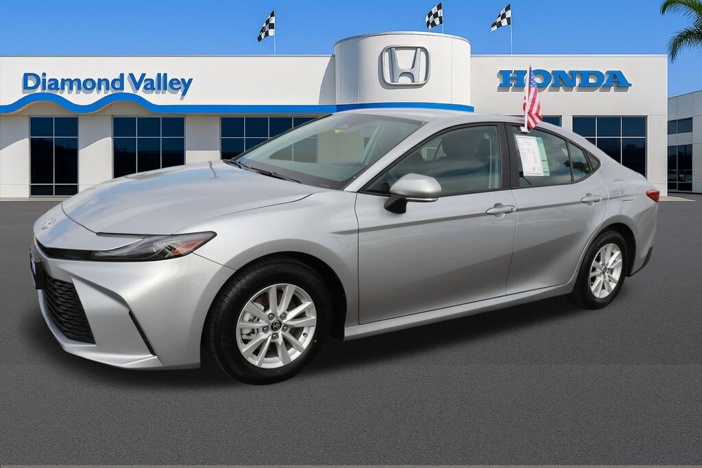 Experience modern hybrid performance and timeless style with the 2025 Toyota Camry LE, available now at Diamond Valley Honda in Hemet, CA. Powered by a responsive 2.5L in-line 4-cylinder hybrid engine and advanced eCVT transmission, this Camry delivers smooth acceleration and exceptional efficiency-achieving up to 53 MPG city. Recognized as one of America's top hybrid sedans, it's the perfect mix of refinement, reliability, and long-term value. Plus, it's eligible for optional upgrade packages to enhance protection and personalization.